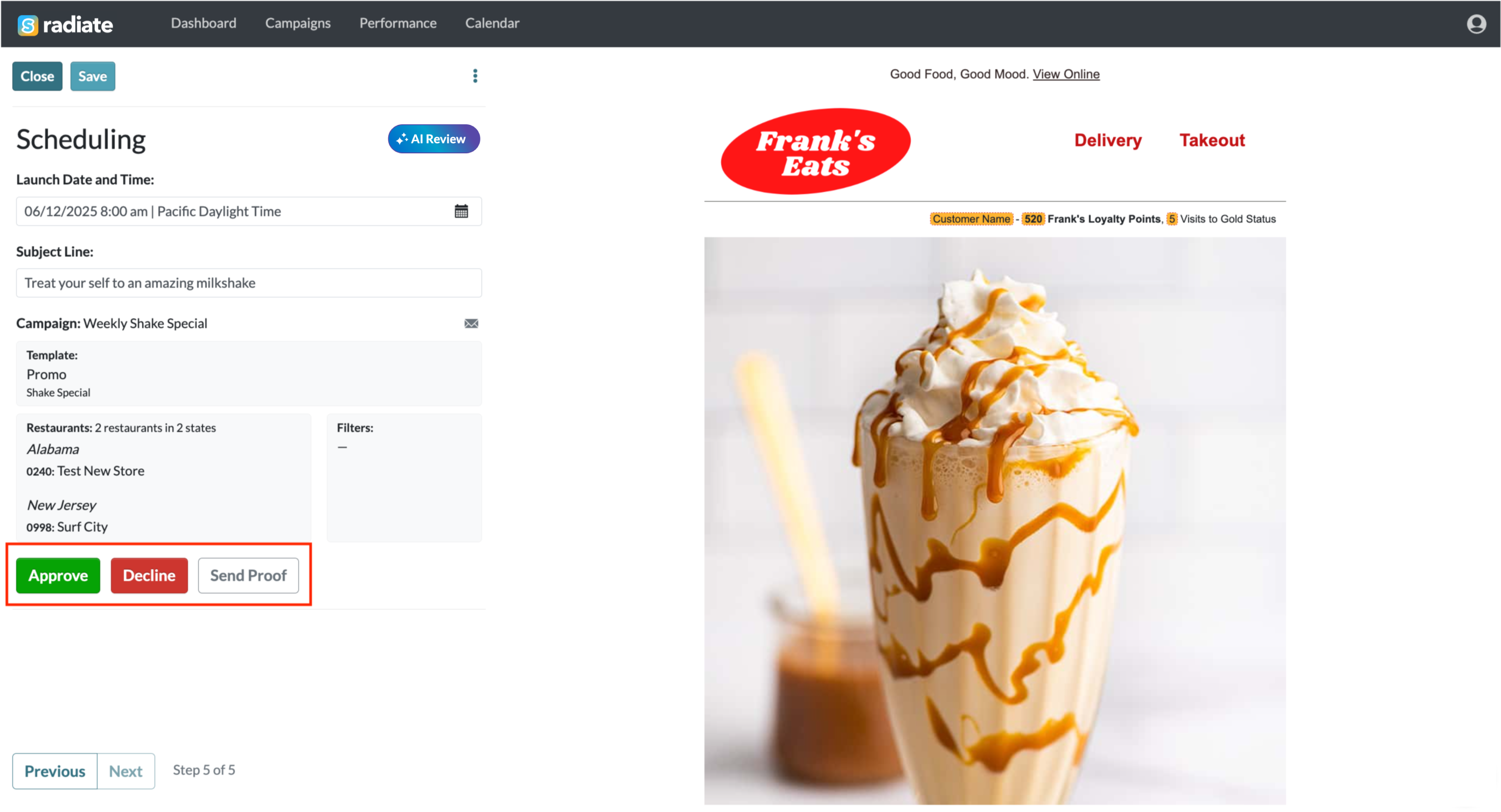 - After proofing, if the campaign is ready to go, click Approve. If changes are needed, click Decline.