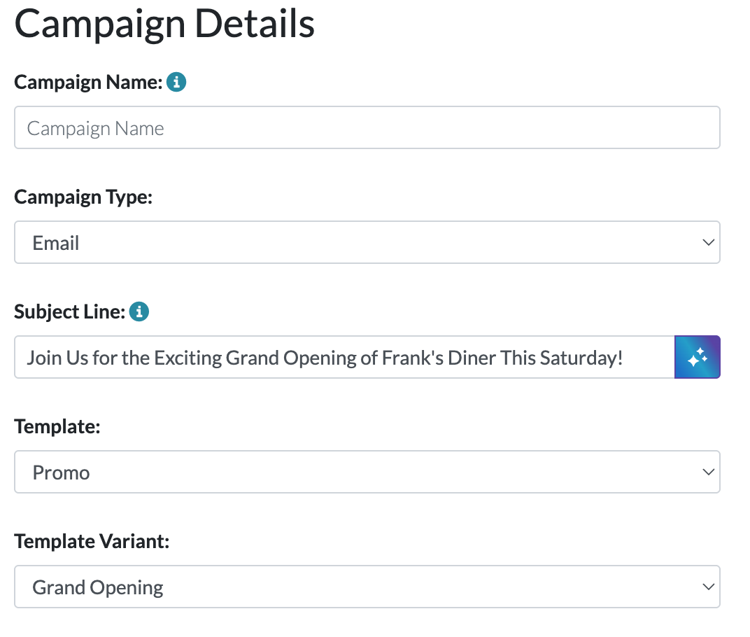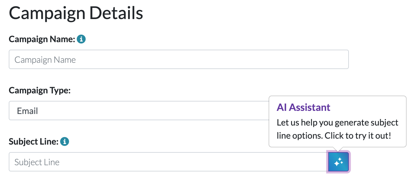 The AI Generate Subject Line Variations feature helps users quickly create multiple subject line options for a campaign. Users can refine an existing subject line or generate options from scratch.