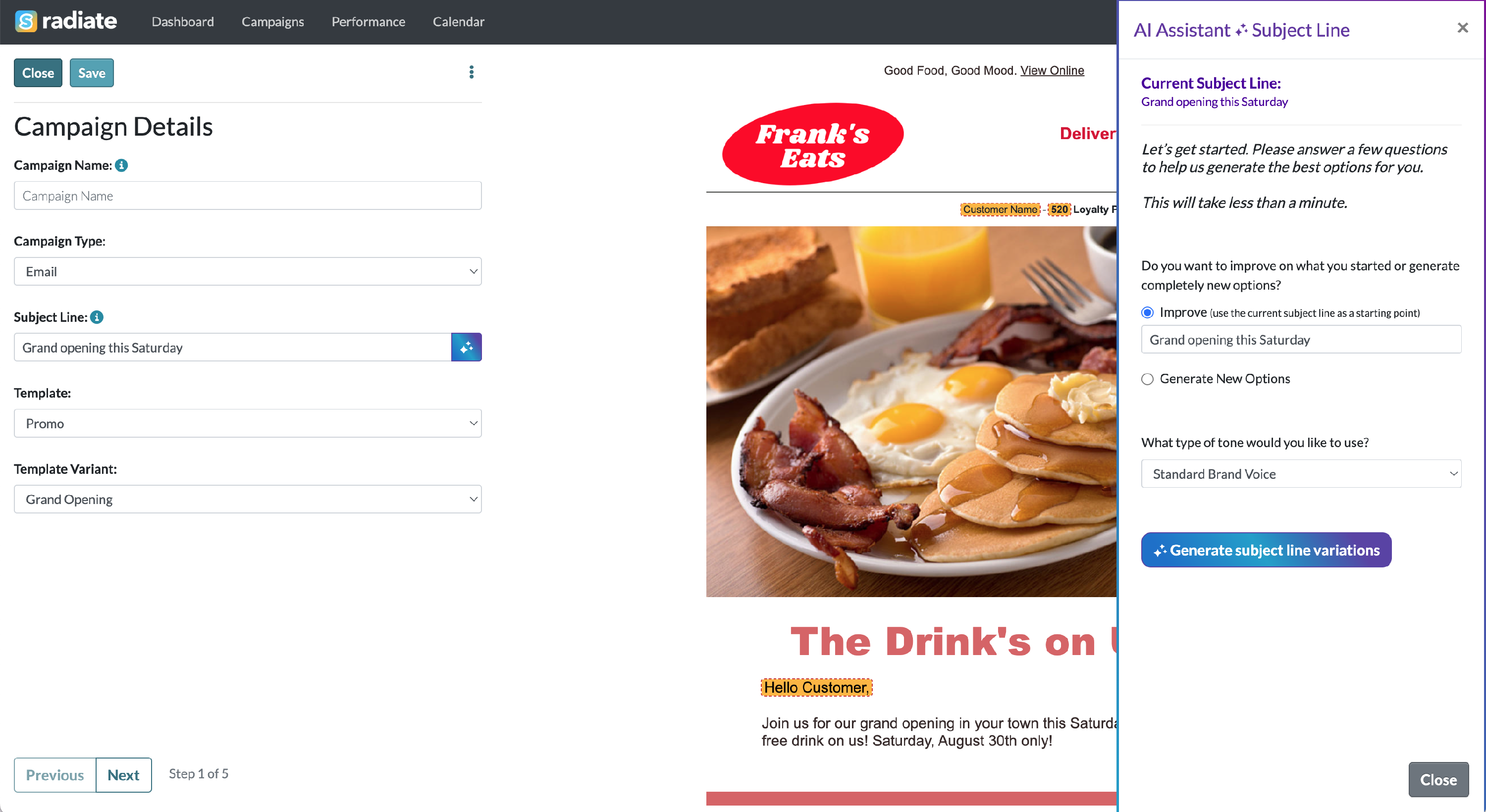 Click the Generate Subject Line Variations button and review the generated subject line variations.