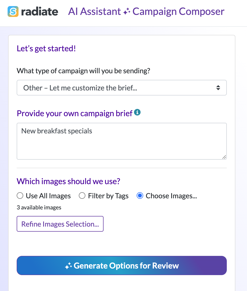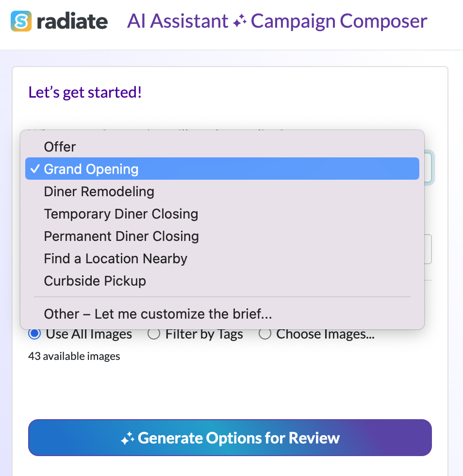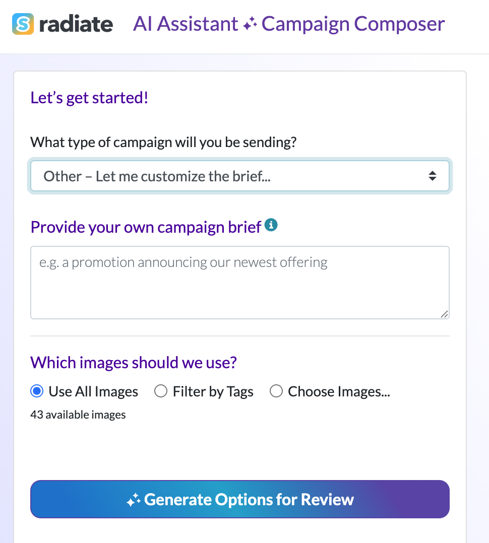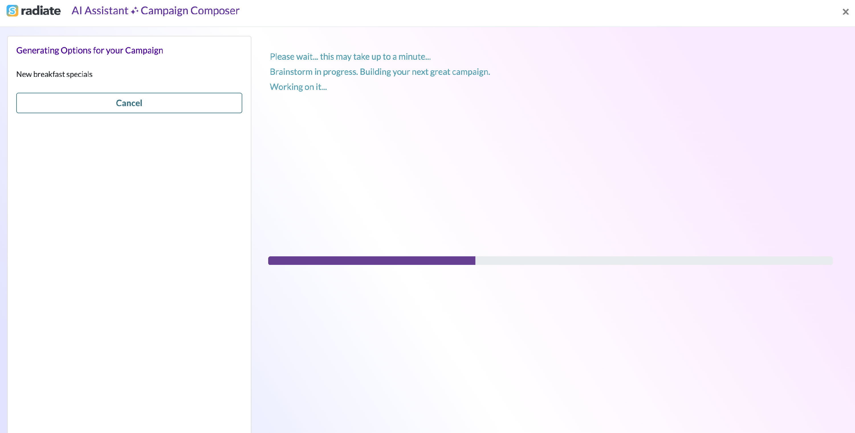 The AI Assistant will begin generating campaign options for you. This may take up to a minute.