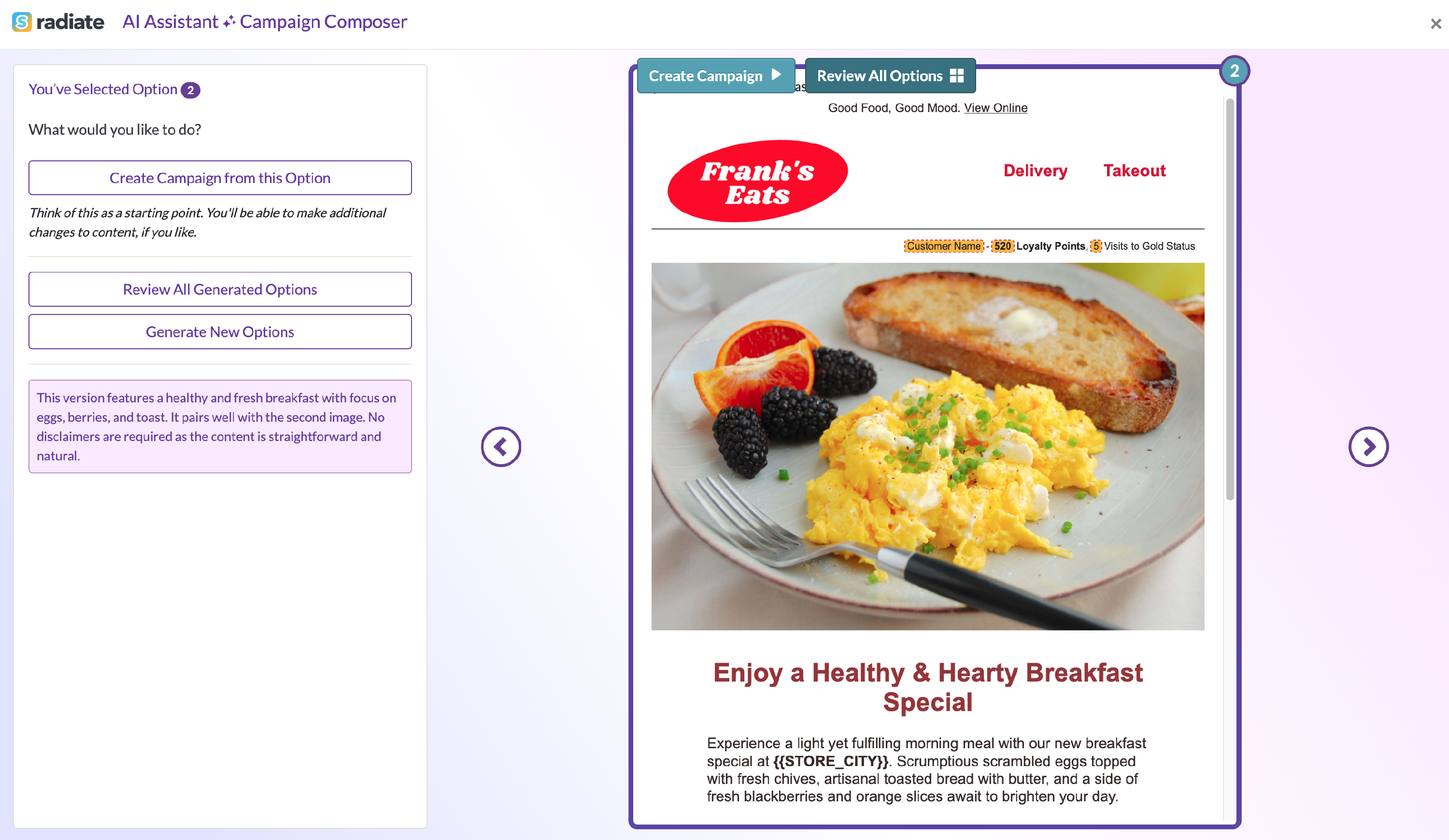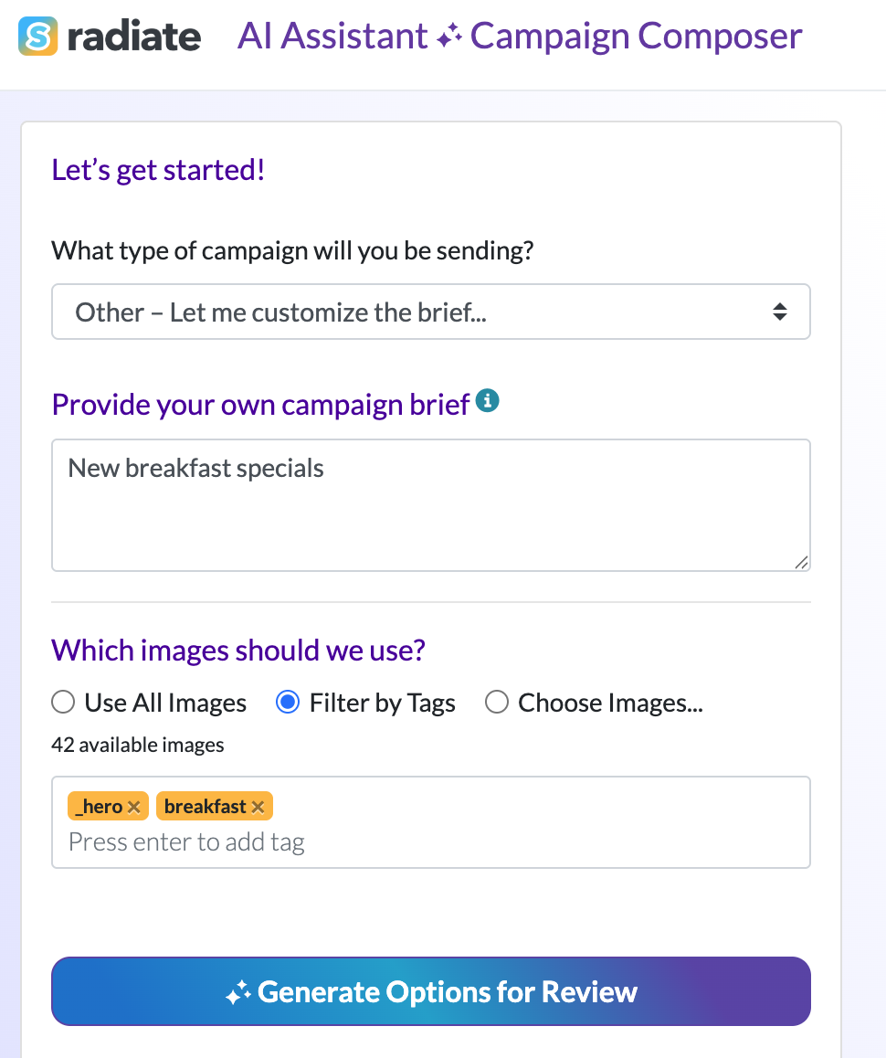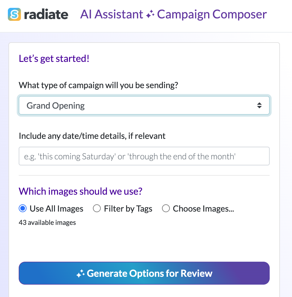 The AI Assistant will begin generating campaign options for you. This may take up to a minute.