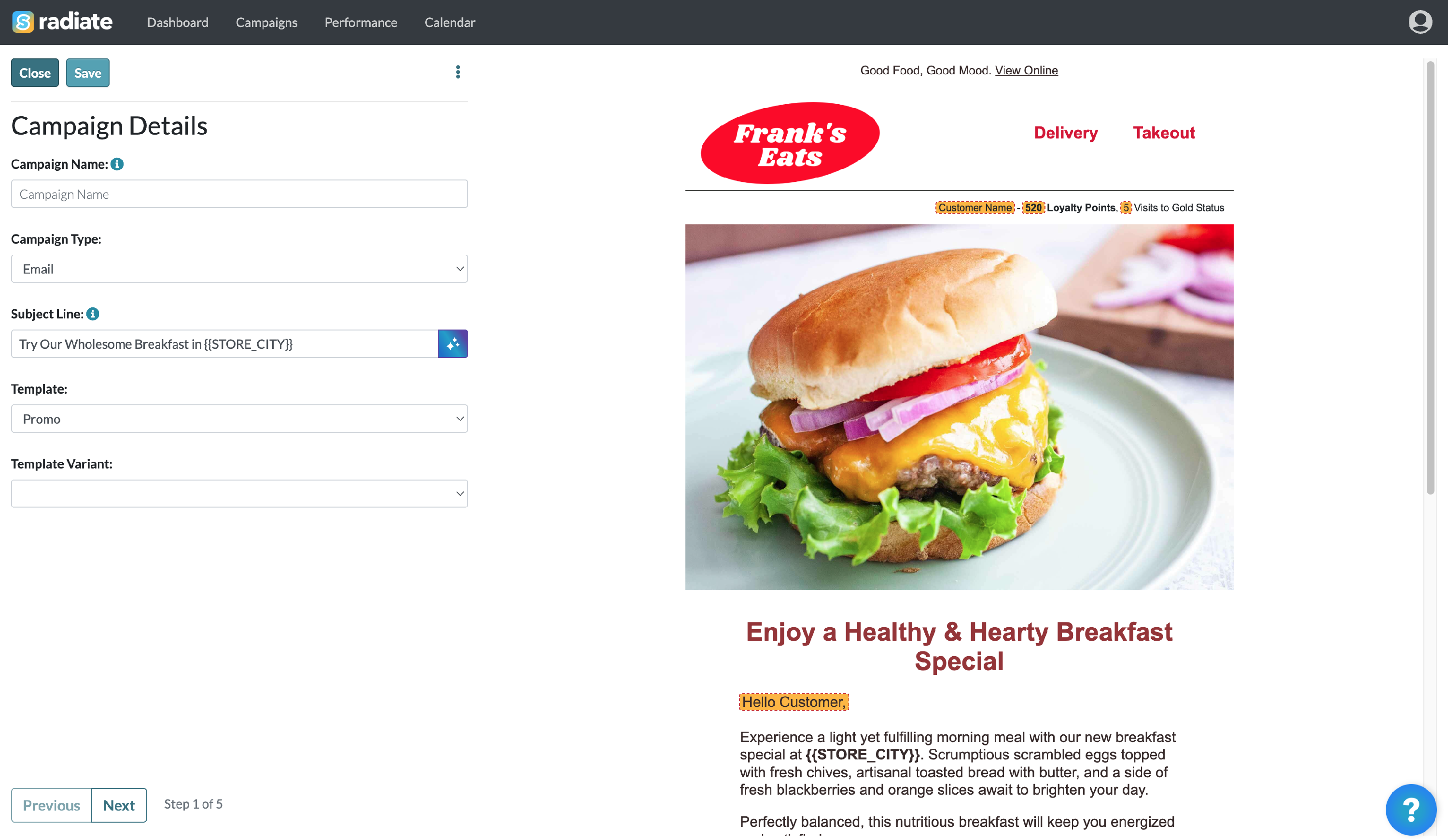 Once a campaign option is selected, you'll begin the campaign editing process from the Campaign Details page. Give the campaign a name and continue editing, customizing, and scheduling the campaign.