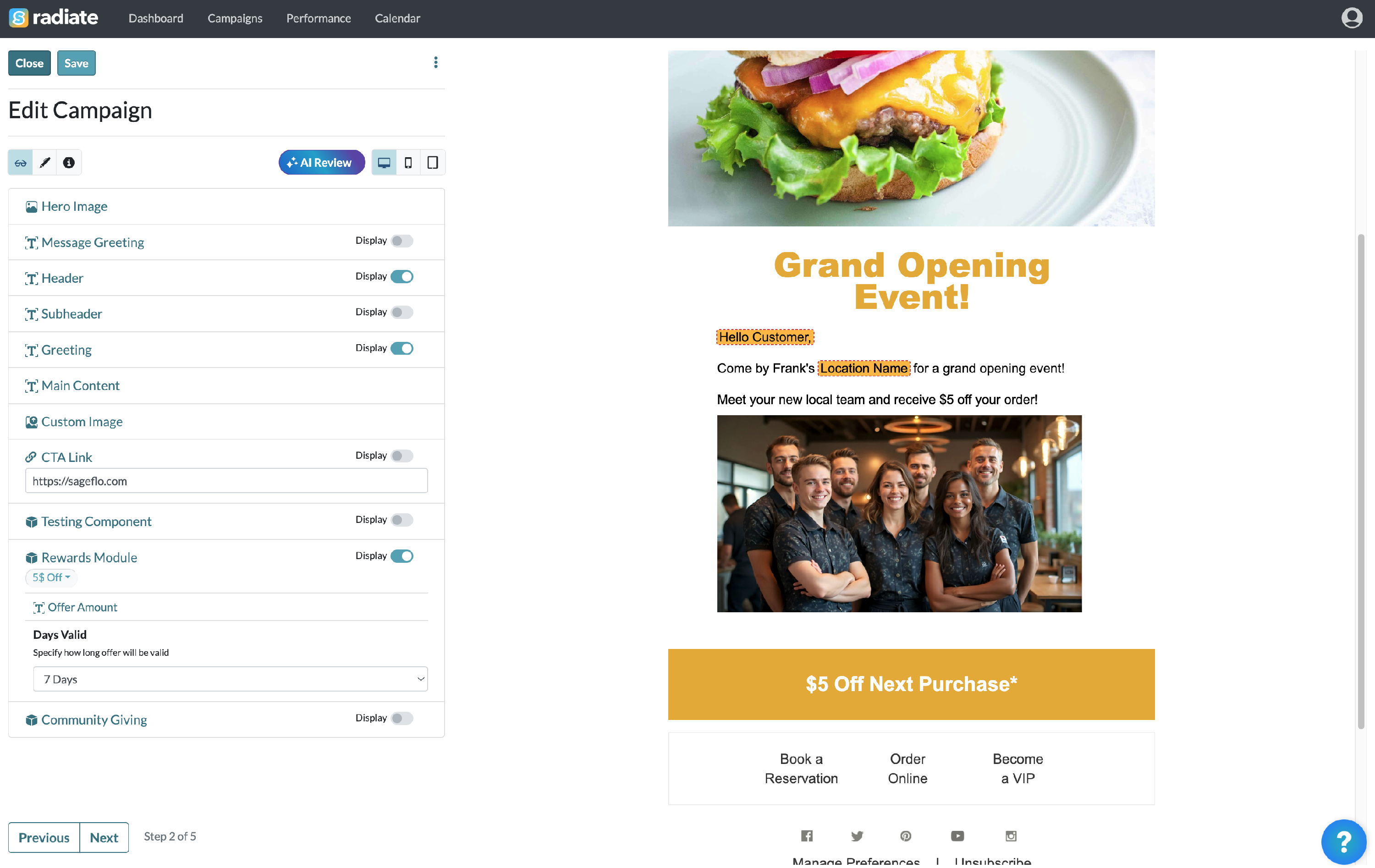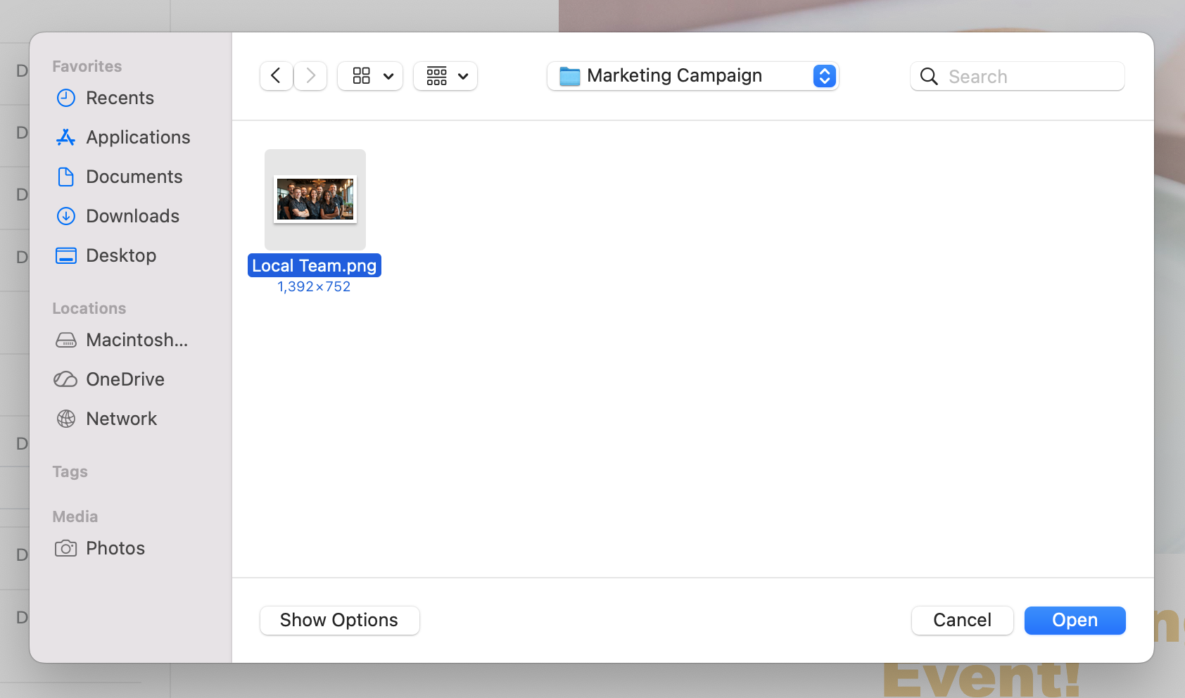 If the image does not appear immediately, it may still be processing in your brand's digital asset manager. This can cause a short delay before you see the image in the preview. If this happens, you can continue editing other campaign content while you wait for the image to process. If you still don't see the preview, save the campaign and check back in a couple of minutes.