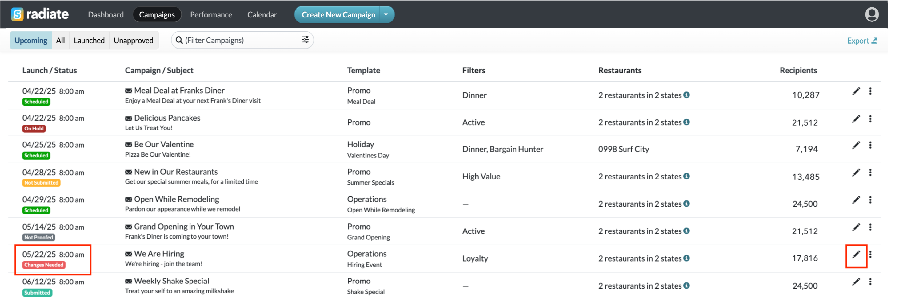 - Log back into Radiate and search for the campaign with Changes Needed status